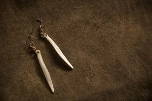 Earrings created from sustainable and ethically sourced bones, natural materials, repurposed electrical wire, beads. All earrings have a sterling and hypo allergenic niobium ear wire, making them a great fit for even those with the most sensitive ears.